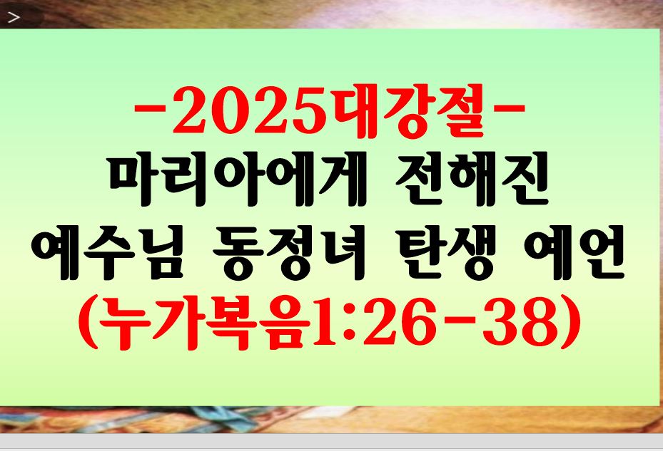 [조은찬 목사 주일설교 442-F] 2025 대강절-마리아에게 전해진 예수님 동정녀 탄생 예언(누가복음1:26- 38), 예수선교회(Jesus Mission): https://www.missionchrist21st.com (대한민국:Seoul, Korea(South)[Rev. Cho Eunchan's Preaching 442-F] 2025 Advent-The prophecy about Jesus' virgin birth which was delivered to Mary(Luke 1:26-38_2025 대강절-마리아에게 전해진 예수님 동정녀 탄생 예언(누가복음 1:26 - 38),**사도신조****전능하사 천지를 만드신 하나님 아버지를 내가 믿사오며,그 외아들 우리 주 예수 그리스도를 믿사오니,이는 성령으..